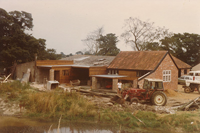 The gallery space  was once an amalgam of a foodstore, stable and piggery. The kitchen area was once calf pens, the long wall from the entrance to the kitchen was stabling and The Guavery (between the gallery and swimming pool) an open cow yard. The studio next door was a granary and feed store and the picture framer’s workshop a piggery. The studio and present gallery space later became a furniture store for Bernard Mills’ house-clearance and antiques business.